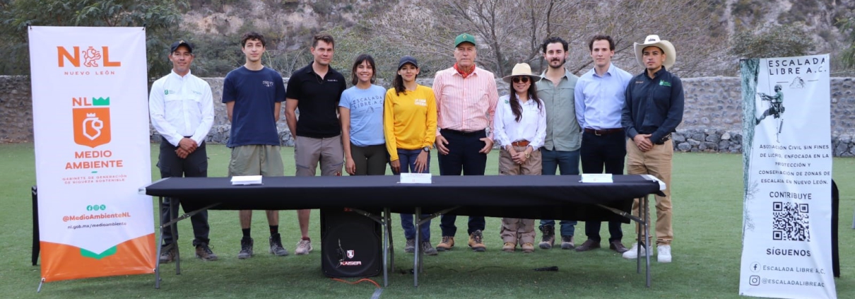 El pasado 6 de febrero, en el emblemático paraje de La Huasteca, se llevó a cabo la firma del “Memorándum de Entendimiento con Asociaciones Civiles de Escalada, Senderismo y Cañonismo”, en la que participaron servidores públicos de la Secretaría de Medio Ambiente y personal de Escalada Libre.