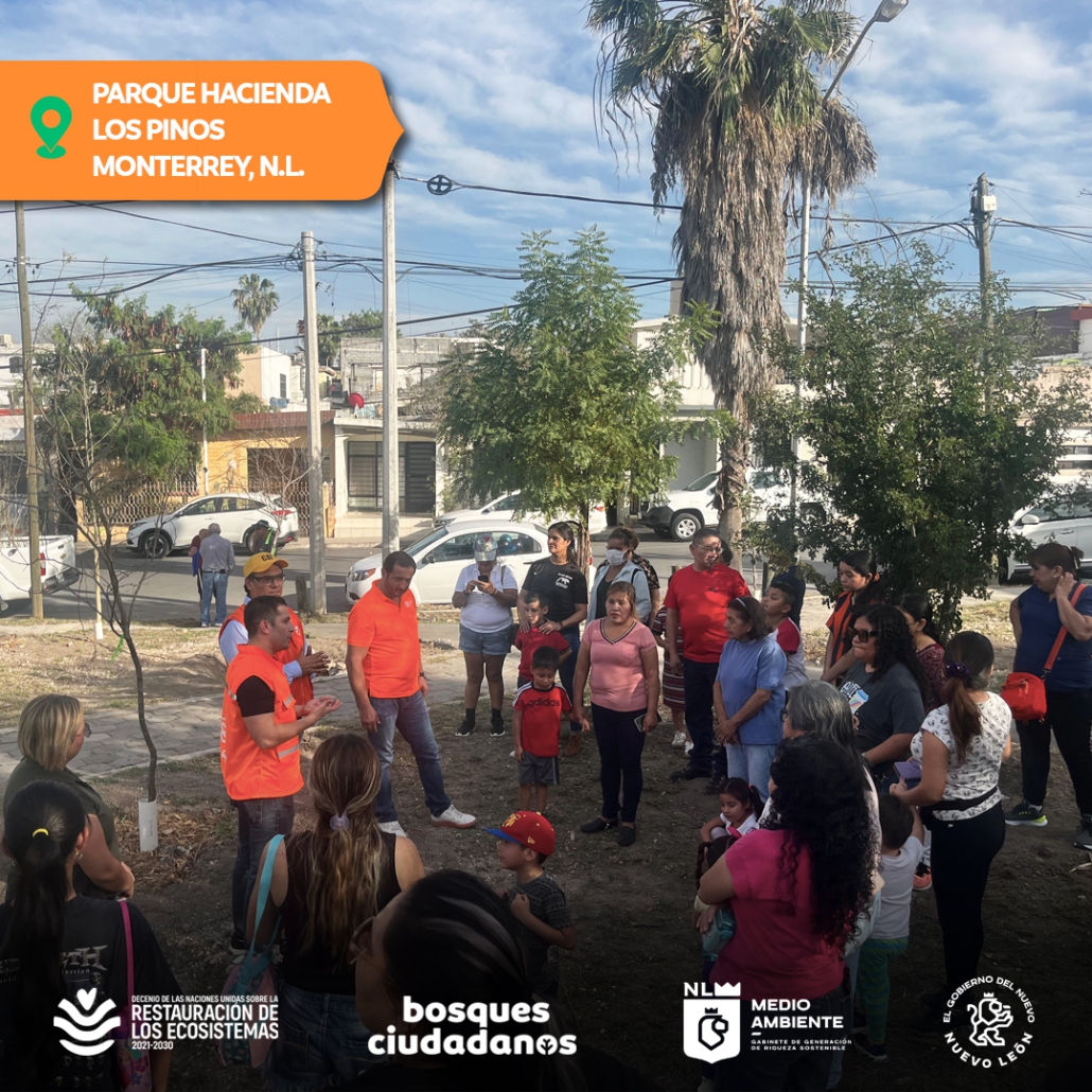 Con el objetivo de crear espacios verdes para la recreación y mejorar la calidad ambiental en las zonas urbanas, la Secretaría de Medio Ambiente de Nuevo León, a través del programa Bosques Ciudadanos, llevó a cabo una jornada de plantación de árboles en el Parque Hacienda Los Pinos, en colaboración activa con vecinas y vecinos del sector.