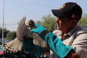 La Guardia Forestal de Parques y Vida Silvestre, en coordinación con Protección Civil del municipio de Guadalupe, atendió el reporte de un ave rapaz que había sufrido un impacto en la vía pública.