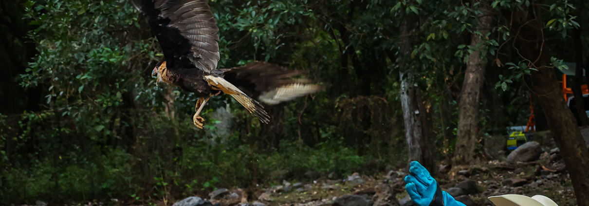 Tras su rescate, el caracara quedó bajo el cuidado especializado de médicos veterinarios, quienes realizaron una evaluación clínica integral y le brindaron la atención necesaria para garantizar su bienestar. Posteriormente, se llevaron a cabo pruebas de vuelo controladas para verificar su condición física y comportamiento natural, confirmando que el ejemplar se encontraba en condiciones óptimas para sobrevivir en su medio natural.