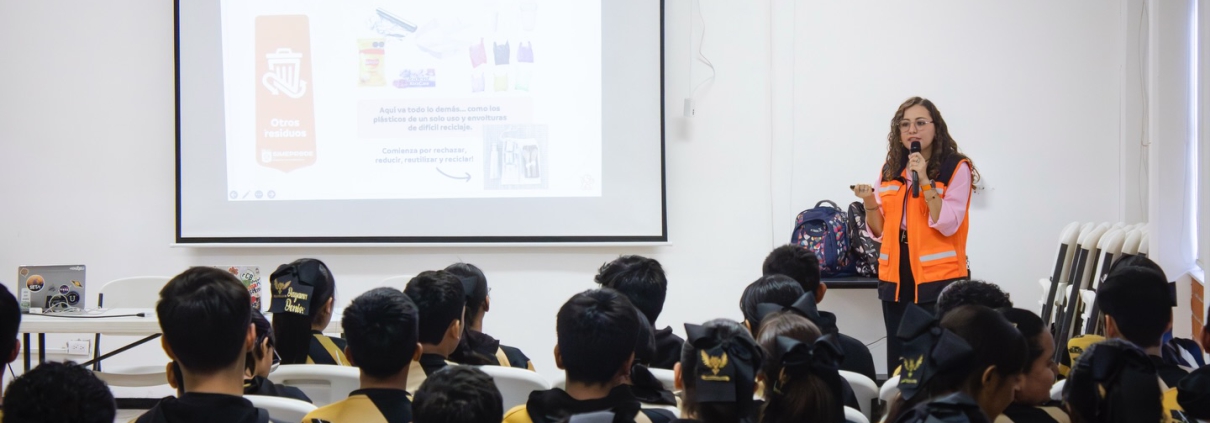 Durante la sesión, las y los estudiantes fortalecieron sus conocimientos sobre la correcta clasificación de residuos, la importancia del reciclaje y el impacto que sus acciones tienen en el entorno. A través de dinámicas participativas, se promovió la responsabilidad social y el compromiso ambiental desde las aulas.