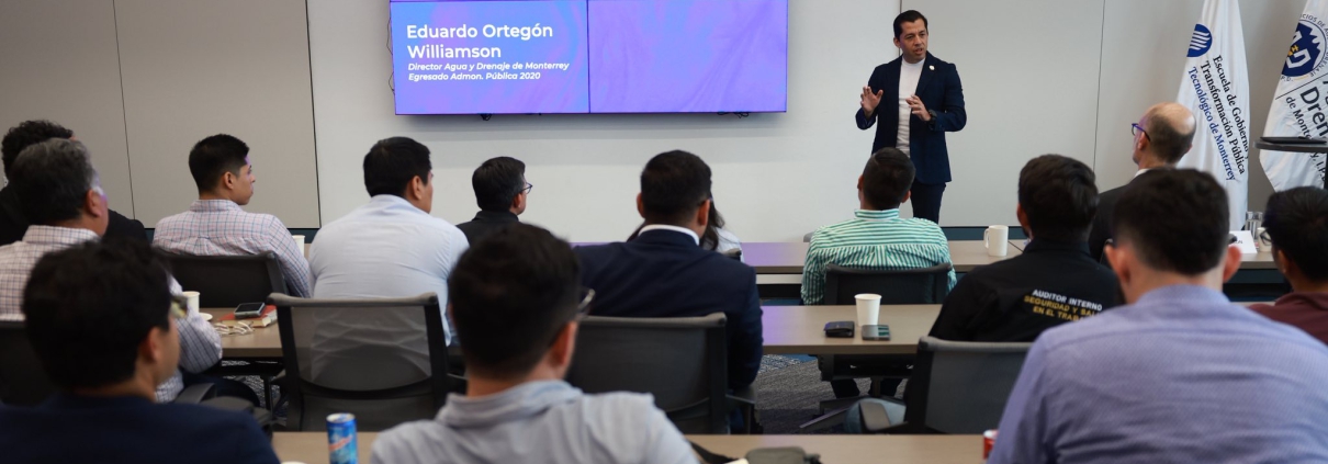 El pasado 5 de marzo Servicios de Agua y Drenaje de Monterrey asistió a la Escuela de Gobierno y Transformación Pública del Tecnológico de Monterrey, donde el Director General, Eduardo Ortegón Williamson participó con la ponencia “Revolución del Agua: ¿puede la tecnología evitar la crisis?”, donde expuso los esfuerzos que se han impulsado en Nuevo León para incrementar la eficiencia hídrica.