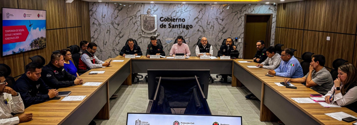 La Protección Civil de Nuevo León participó en la presentación del Plan de Contingencias para la Temporada de Sequía, Estiaje e Incendios Forestales 2026, realizada por el Consejo Municipal de Protección Civil de Santiago en el municipio de Santiago.