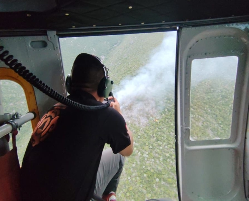 Brigada Fénix combate incendio forestal en Rayones con apoyo aéreo y trabajo coordinado