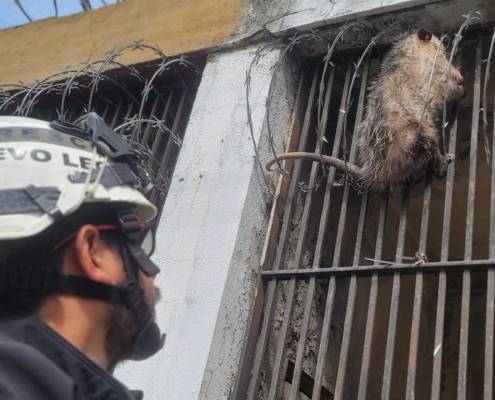 Protección Civil rescata tlacuache atrapado en el centro de Monterrey