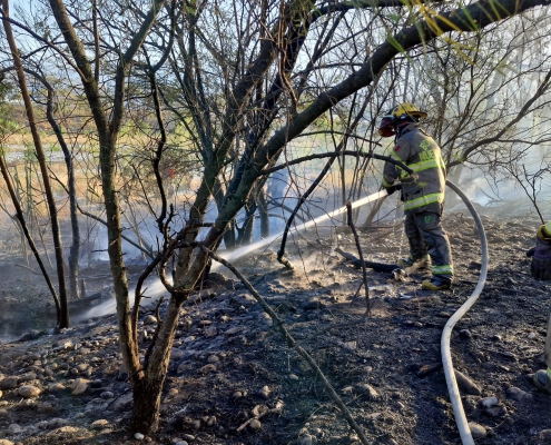 Elementos de Protección Civil de Nuevo León y Bomberos de N.L. Atienden reporte de incendio de maleza sobre el lecho del Río Santa Catarina
